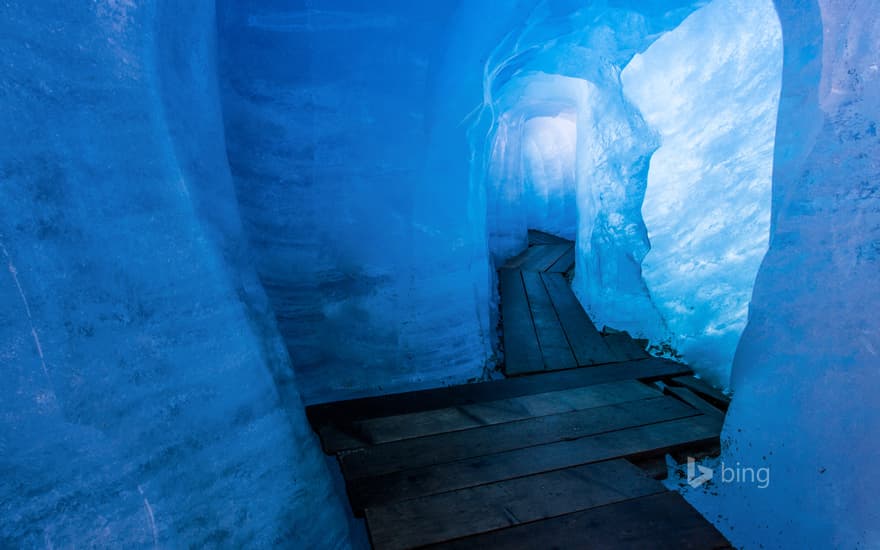 Rhône Glacier ice grotto in Valais, Switzerland